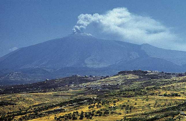 ИЗВЕРЖЕНИЕ ВУЛКАНА ЭТНА на Сицилии, одного из самых знаменитых вулканов мира. После 1500 г. зарегистрировано более 100 его извержений.