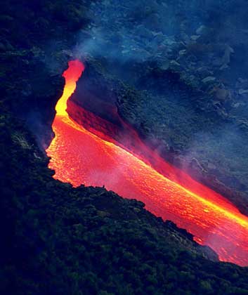 ЛАВОВЫЙ ПОТОК - раскаленная жидкая магма, устремляющаяся вниз по склону.