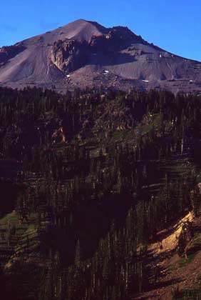 ВЕРШИНА ВУЛКАНА ЛАССЕН-ПИК (Каскадные горы, США), последние извержения которого происходили в 1914-1921. Однако термальные источники и грязевые гейзеры свидетельствуют о его активности.