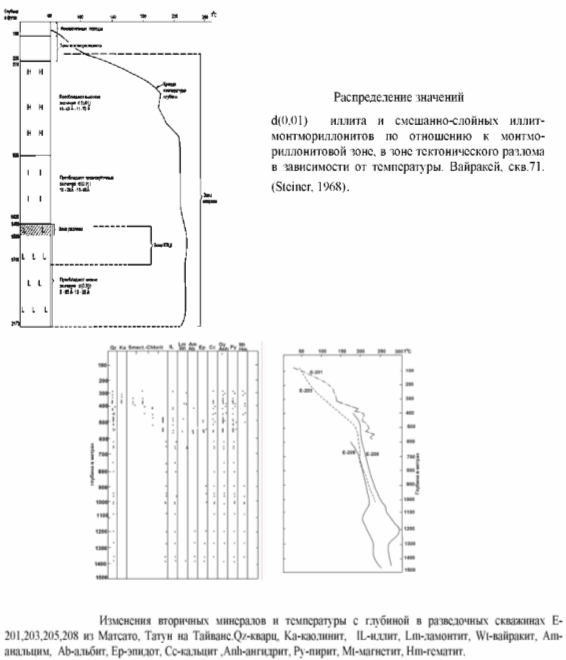 Steiner первым заметил регулярность изменений в составе глин в зависимости от глубины на Вайракейском геотермальном поле. Он дал "скрытый масштаб" минералогического геотермометра, который возможно калибровать, так как и замеры температуры и замеры давлений делаются в скважинах регулярно. Так, например, Lan et al., отмечают аналогичную картину в составе глин по глубине и температуре в Татун на Тайване, за исключением изменяющихся смешаннослойных хлорит смектитов.