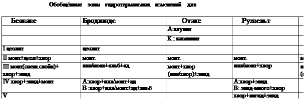 Таблица 2 представляет обобщение типов гидротермальных изменений в алюмосиликатных породах, т.е. обычно в изменённых вулканических, осадочных и метаморфических районах. Эта классификация базируется в основном на классификации Meyer, Henley, но термины использовались в различных контекстах Rose, Lowell, Guilbart. Однако, это целесообразно обсудить прежде, чем использовать общие термины, т.к. они часто используются по разному различными исследователями.
