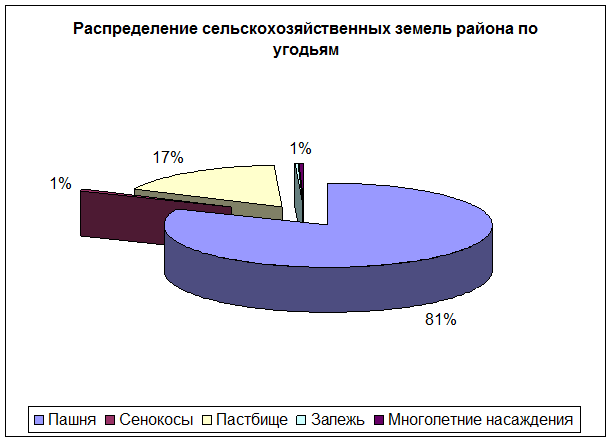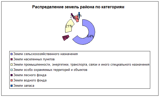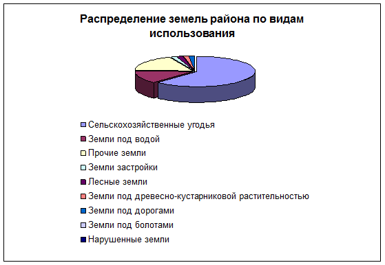 Собственниками половины площади всех земель в районе являются граждане - 161754 га (50,1%), второе и третье место по площади занимает собственность муниципалитета (23,8%) и РФ (19,6%) и совсем небольшая площадь принадлежит юридическим лицам и субъекту РФ. Основные площади в районе используются хозяйственными товариществами и обществами 156389,05 га.