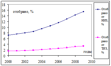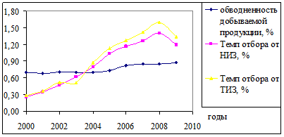 Рис. 58. Динамика КИН, темпа отбора от НИЗ и темпа отбора от ТИЗ