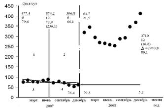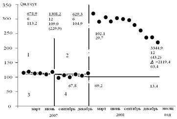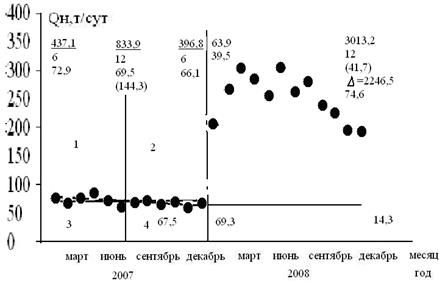 Средний дебит нефти новых скважин qн нов =8,2 т/сут