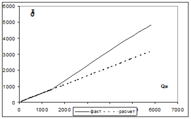 Рис. 57. Динамика накопленной добычи нефти, жидкости и накопленной закачки воды
