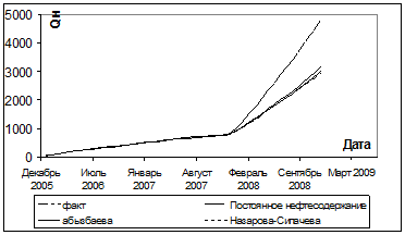 Динамика накопленной добычи нефти, жидкости и накопленной закачки воды приведена на рис. 57