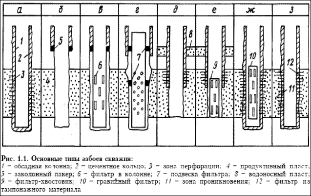 На рис 1.1 изображены основные типы конструкций забоев скважин.
