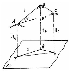Точки A, B, C находятся на поверхности Земли. Их горизонтальные проекции - a, b, c. Расстояние ab называется горизонтальным проложением