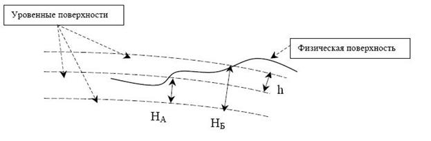 Уровенная поверхность – замкнутая поверхность, перпендикуляр к которой в каждой точке совпадает с направлением отвесной линии.