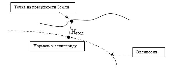 Геодезической высотой Нгеод . называется расстояние от эллипсоида до точки на земной поверхности по нормали к эллипсоиду: Нгеод.
