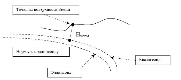 Нормальной высотой Ннорм. называется расстояние от поверхности квазигеоида до точки на земной поверхности по нормали к эллипсоиду: