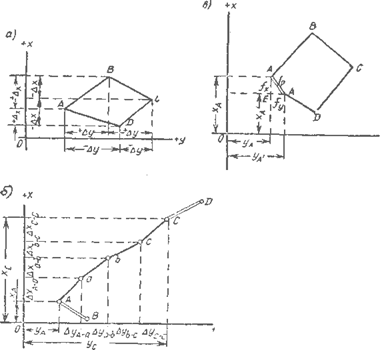 В практике геодезических работ для строительства приходится определять координаты не какой-либо одной точки, а ряда точек, связанных между собой горизонтальными приложениями между точками и дирекционными углами сторон, заключенных между этими точками.