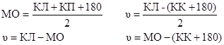 При вычислении надо руководствоваться правилом: к величинам КП,КЛ и МО , меньшим 90О , необходимо прибавлять 360О .