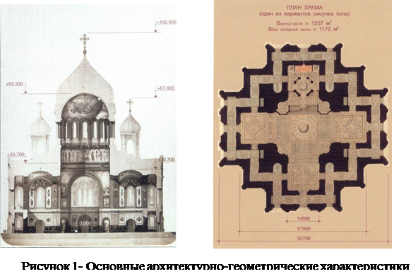 В первой главедиссертантом описана история воссоздания Храм Христа Спасителя, приведены основные архитектурно-геометрические характеристики Храма Христа Спасителя, являющегося крупнейшим православным храмом России (рисунок 1), и особенности проведения обмерных работ при воссоздании Храма.