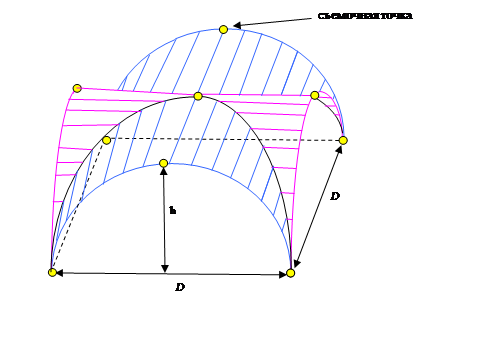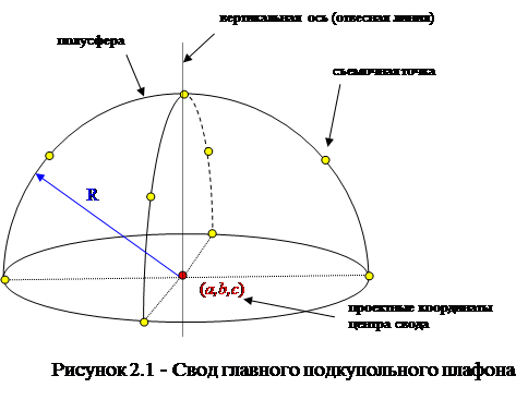 Под основной формой церковного подкупольного плафона понимается поверхность, образованная вращением выпуклой непрерывной кривой вокруг вертикальной оси. Кривая, равная четверти окружности, образует при вращении купол в виде полусферы – свод главного подкупольного плафона (рисунок 2.1).