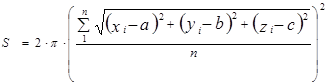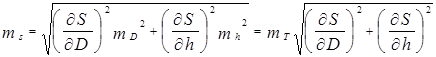 2. Формула расчета погрешности mS определения площади купольного свода придела по результатам обмеров: