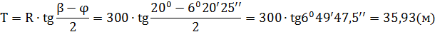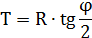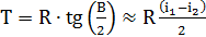 Отрезки касательных от точки ВУ до точки НК и КК называются тангенсами – Т и определяются по формуле: