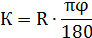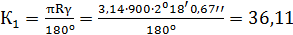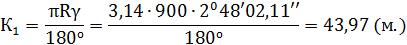 Дуга окружности от начала до конца закругления называется кривой – К и определяется по формуле: