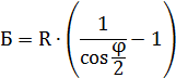 Отрезок от вершины угла (ВУ) до середины кривой (СК) называется биссектрисой – Б и определяется по формуле: