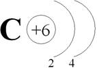 Углерод (лат. Carboneum) С – химический элемент IV группы периодической системы Менделеева: атомный номер 6, атомная масса 12,011(1). Рассмотрим строение атома углерода. На наружном энергетическом уровне атома углерода находятся четыре электрона. Изобразим графически: