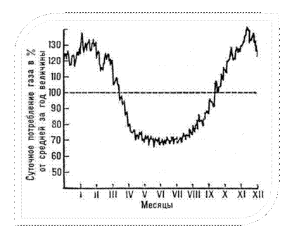 Газотранспортная система, рассчитанная на максимальную потребность в газе, на протяжении года будет не загружена, если же исходить из минимальной подачи, то город в отдельные месяцы не будет полностью обеспечен газом. Поэтому газотранспортную систему сооружают исходя из средней её производительности, а вблизи крупных потребителей газа создают Г. х. Сезонную неравномерность потребления газа частично выравнивают с помощью т. н. буферных потребителей, которые летом переводятся на газ, а зимой используют др. вид топлива (обычно мазут или уголь).