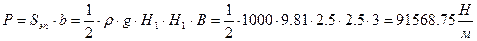 P=ρgH1=1000*9.81*2.5= 24.525 kН/м