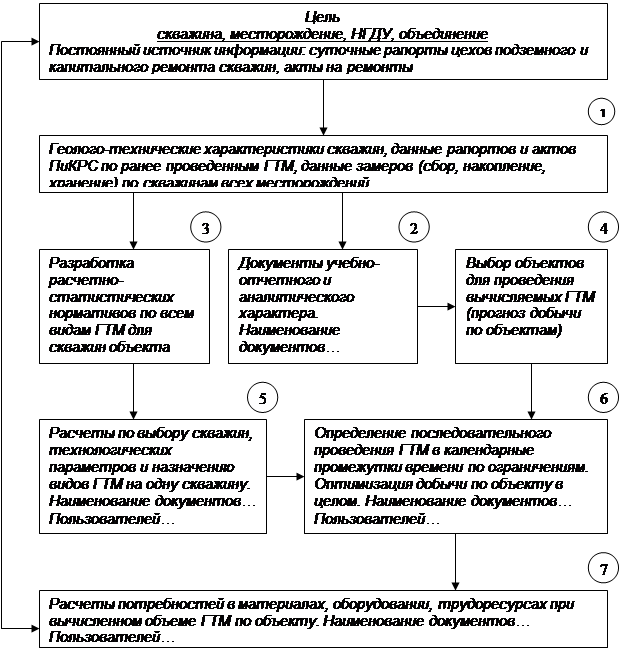 - сведение этой информации в документы учетно-отчетного и аналитического характера для наблюдений за состоянием скважин, в которых проводятся ремонты, за результатами этих ремонтов и для других целей добычи и оперативного управления работами (блок 2);