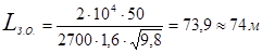 - длина зоны отброса газов при взрыве, равная ≈ 67,58 м;