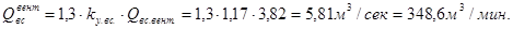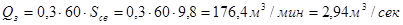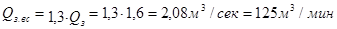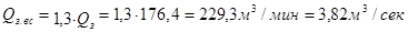 Для эффективного выноса пыли из выработки, скорость движения воздуха по выработке должна быть не ниже 0,3 м/с. С учётом этого, подача воздуха по пылевому фактору составит: