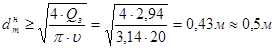 Диаметр вентиляционных труб выбирается из расчёта, чтобы скорость по трубопроводу не превышала 20 м/сек. Для нагнетательного вентилятора принимаем гибкие вентиляционные трубы.