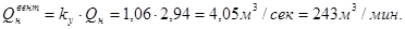 Производительность вентиляторов определяем с учётом количества воздуха, необходимого для проветривания выработок, и коэффициента воздухопроницаемости.