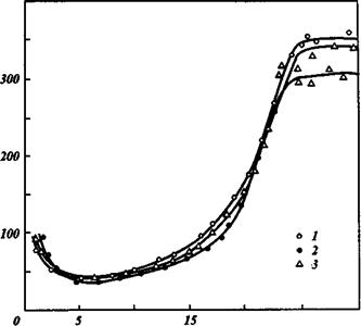 Г.С. Степанова и В.Н. Шустеф подробно изучали особенности процесса дифференциальной конденсации вуктыльской пластовой смеси, выполняя одновременно для сравнения расчеты по контактной конденсации [47]. По данным этих исследователей, граничное давление, ниже которого расчетные составы газовой фазы для дифференциального и для контактного процессов несколько различаются, равно приблизительно 20 Мпа.
