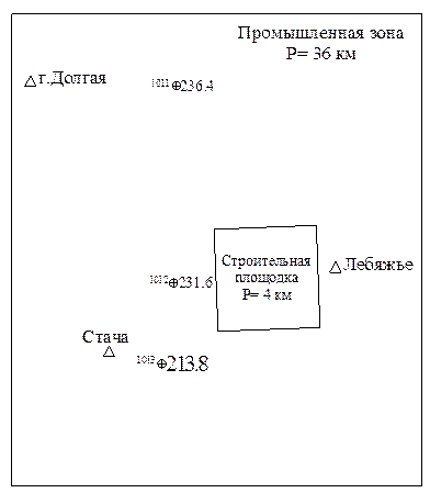 2) промышленная зона площадью 36 км², размещенная симметрично строительной площадке;