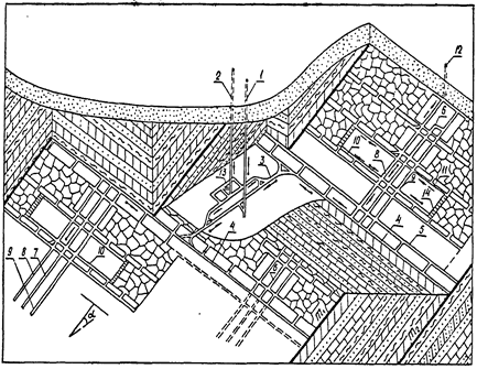 Подземная добыча связана с необходимостью проведения сети подземных горных выработок, по которым добытое полезное ископаемое транспортируют на поверхность (рис. 1.1). При добыче ископаемых углей наиболее распространен механический способ разрушения.