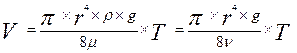 Для выражения динамической (кинематической) вязкости может быть использована формула, для определения расхода ламинарного течения вязкой жидкости в горизонтальной трубе, происходящего под действием силы тяжести.