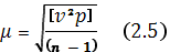 2) Средней квадратической погрешности единицы веса μ для случая, когда даны поправки равноточных измерений, v 1 , v 2 , v 3 , …, vn , полученной из (2.2)
