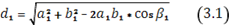 При использовании косвенного метода измеряют вспомогательные параметры (углы, базисы, физические параметры), а длину отрезка вычисляют по формулам, например, если по линии АВ отсутствуют условия для непосредственного измерения, то измеряют длины линий а1 и b1 , горизонтальный угол β1 (рис. 3.1), а длину линии вычисляют по формуле: