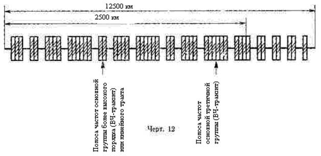 · Максимальная протяженность номинальной цепи третичного сетевого тракта страны или магистральной сети составляет 12500км (черт. 12).