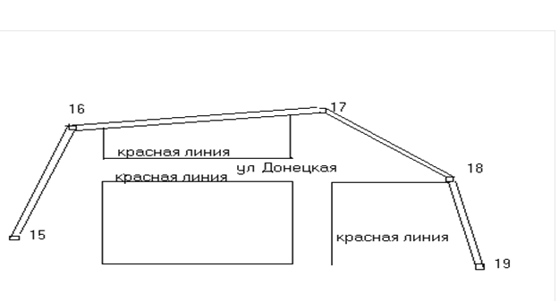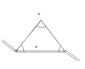 Построение прямого угла в стесненных условиях выполняют с использованием свойств «египетского» треугольника с отношением сторон 3:4:5 . Для этого от вершины Д (рис.1 в) по линии ДС откладывают отрезок кратный 4, например 8 м. Затем прикладывают нулевой штрих рулетки к точке Д и закрепляют его, а штрих, кратный сумме 3+5=8, в нашем случае 16 м, прикладывают и удерживают у точки С. После этого натягивают рулетку за штрих кратный 3, т.е. за штрих 6 м, и в месте прогиба отмечают точку А. при этом линия АД будет перпендикулярна линии ДС.