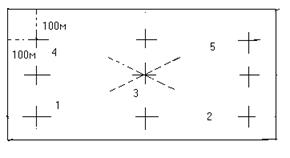 Анологичные наблюдения выполняют из опорного пункта 2 (Примечание: нумерацию опорных пунктов на рис. 1 следует выполнять против часовой стрелки).