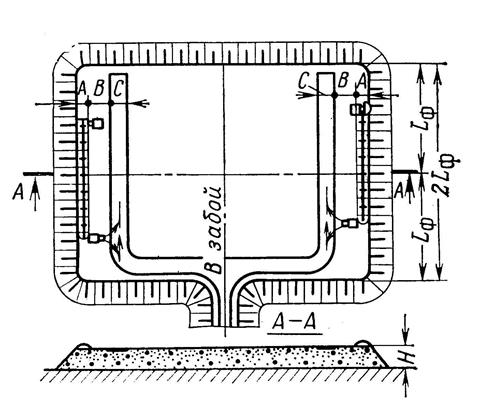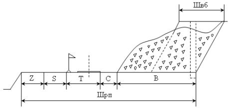 А = 3-5 м, В = 5-7 м, С – ширина проезжей части дороги, Lф – длина фланга;