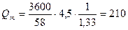 Qтехн = 40·1,1·60/19,2 = 137,5 т/ч