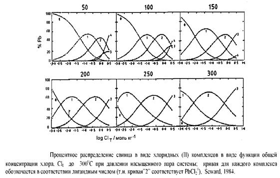 Рисунок 8 показывает распределение различных хлоридов РЬ в виде функции mCl - основанную на экспериментальных данных.