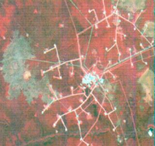 Из космических цифровых (сканерных) систем съёмки представляют интерес американские спутники серии LANDSAT, функционирующие с 1972 г. На спутниках LANDSAT устанавливали два типа цифровой аппаратуры: MSS (multispectral scanner) и TM (Thematic Mapper). MSS снимает 4 зоны спектра. Пространственное разрешение около 80 м, радиометрическое разрешение - 6 бит (64 градации яркости в каждой зоне спектра). Сканер TM имеет 7 зон съёмки. Пространственное разрешение 30 м, радиометрическое разрешение - 8 бит (256 градаций яркости в каждой зоне спектра). Площадь кадра LANDSAT 185x170 км, т.е 31 450 км2 (рис. 4).