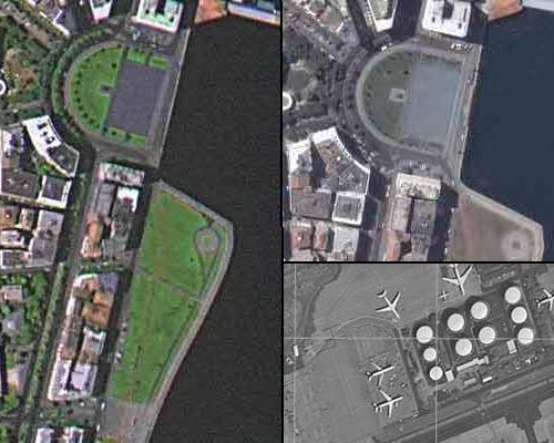 Самое высокое пространственное разрешение в панхроматическом режиме на сегодняшний день имеют: корейский спутник Kompsat-2 - 1 м (рис. 6), израильский спутник EROS-B1 - 70 см (рис. 7) и американские спутники Ikonos - 1 м (рис. 8), Quick Bird II - 61 см (рис. 9) и WorldView-1 - 47 см (рис. 10).