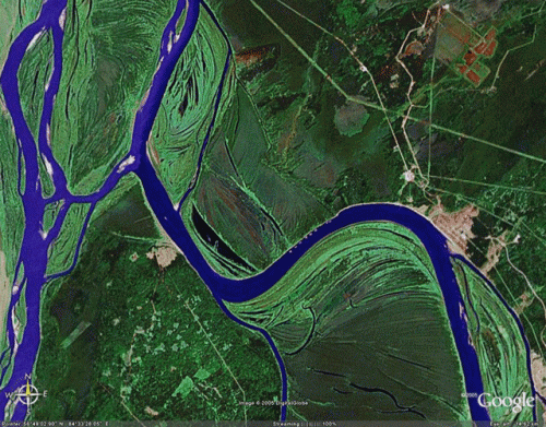 | Рис. 4. Снимок района устья р. Томи, сделанный со спутника Landsat-7 (разрешение 30 м). (http://picture1534/yandex.ru) |