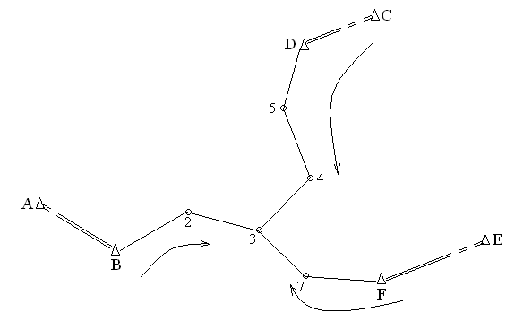 Составить первую рабочую схему исполненной сети (рис. 2) на которую выписать из таблицы 2 измеренные направления.
