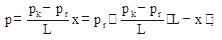 Обозначим xf текущее расстояние до контура нефтеносности в момент времени t после начала вытеснения, L - расстояние от контура питания до галереи, рв , рн -давления в любой точке водоносной и нефтеносной части пласта соответственно, p(t)-давление на границе раздела вода нефть, отстоящей от контура питания на расстоянии xf . Вспомним, что в случае установившегося прямолинейно-параллельного фильтрационного потока одной жидкости распределение давления и скорость фильтрации описываются следующими уравнениями: