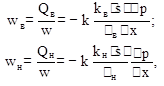 где wв , Qв и wн , Qн — скорости фильтрации и объемные расходы соответственно воды и нефти; ηв , ηн , — коэффициенты динамической вязкости фаз; kв (s) и kн (s) относительные фазовые проницаемости; s=sв — водонасыщенность.