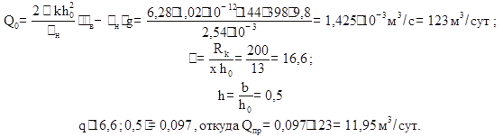 Решение: определим предельный безводный дебит при приближённой формуле Н. Ф. Иванова